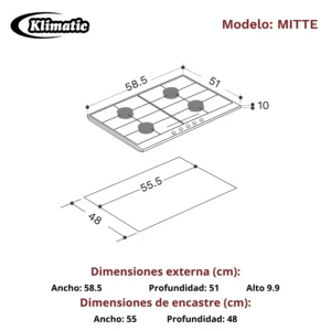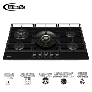 Cocina Empotrable a Gas Klimatic Massima 76cm 5 hornillas