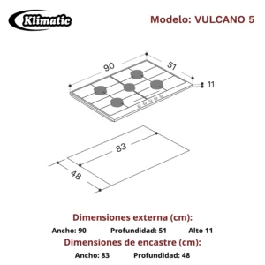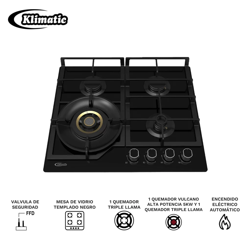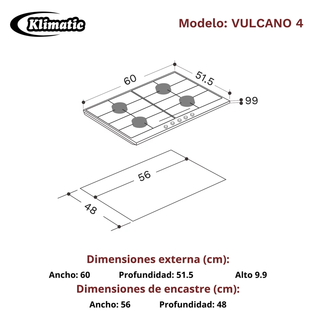 Cocina Empotrable a Gas Klimatic Vulcano 4 hornillas