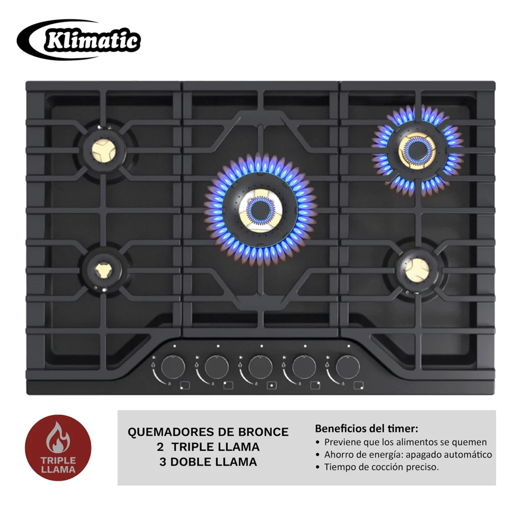 Cocina Empotrable a Gas Klimatic Massima 76cm 5 hornillas