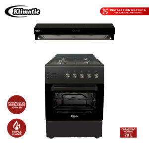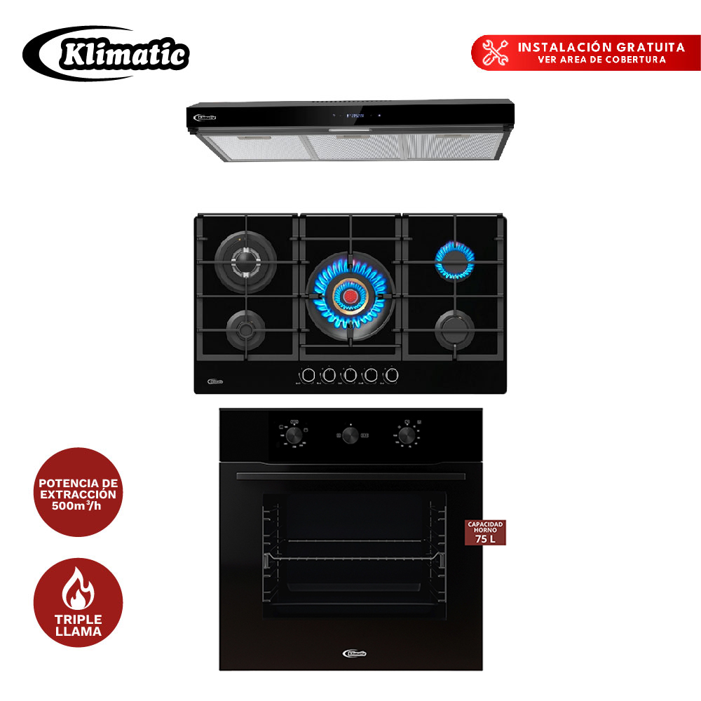 Tricombo Klimatic Cocina Empotrable Vulcano 5 + Campana Extractora Volendam + Horno a Gas Jenna
