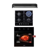Tricombo Klimatic Cocina Empotrable Vulcano 5 + Campana Extractora Volendam Black + Horno eléctrico Essen